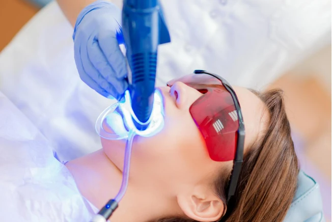 Resultados imediatos para um sorriso mais branco. O clareamento a laser é feito no consultório e utiliza um gel potente ativado por luz, proporcionando um branqueamento intenso em uma única sessão.